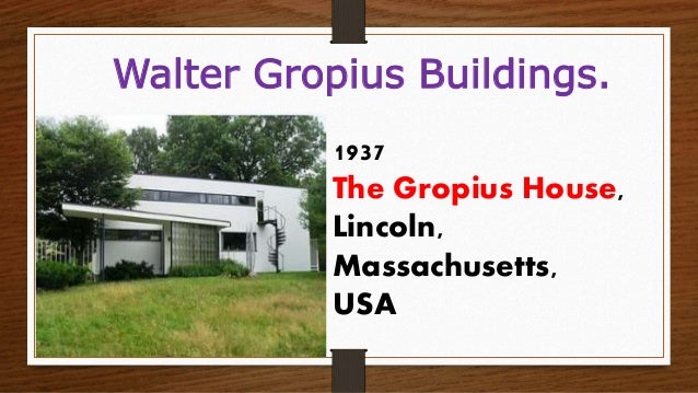05 06 2014 · Gropius house The Gropius House was the family residence of Gropius It is now owned by Historic New England and is open to the public This house was his first architectural commission in the United States He designed it in 1937 when he came to teach at Harvard University s Graduate School of Design and it was built in 1938